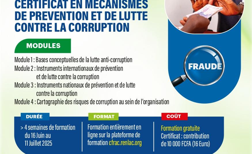 Offre de formation pour le certificat en Mécanismes de prévention et de lutte contre la corruption : les candidatures reçues du 1er au 15 juin 2025