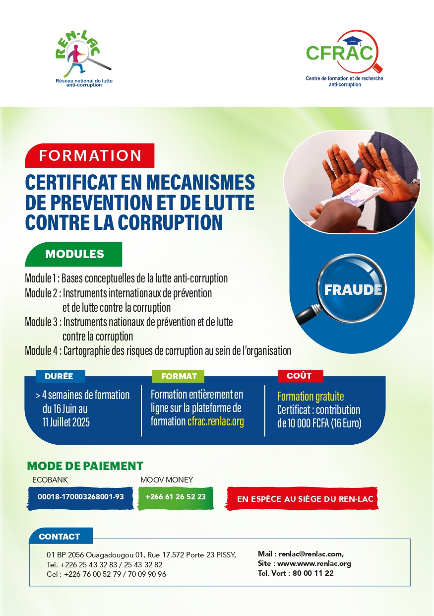 Offre de formation pour le certificat en Mécanismes de prévention et de lutte contre la corruption : les candidatures reçues du 1er au 15 juin 2025